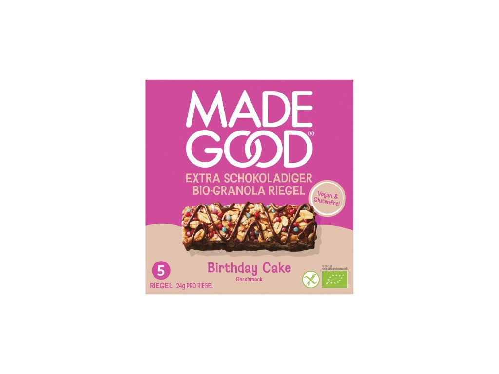 MadeGood Müsli tyčinky narozeninový dort 120 g bio BIO VEGAN BEZLEPEK